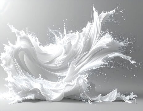A dynamic splash of white liquid against a gray background