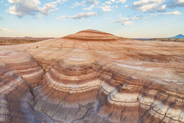 Aerial view of layered bentonite hills in Utah, USA
