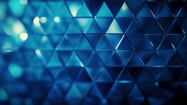 Background with blue triangles arranged in a diamond pattern with a bokeh effect and color grading