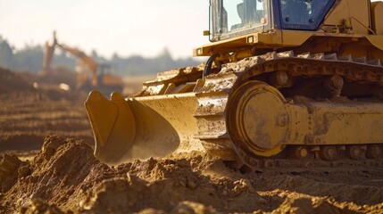 Heavy machinery operator grading land with a bulldozer. Featuring control and precision