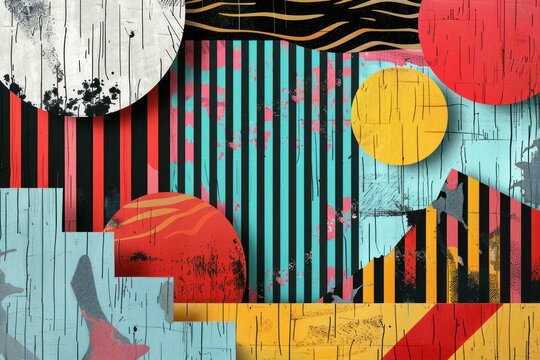 Abstract retro illustration in the style of a paper collage, vintage aesthetic wallpaper design.