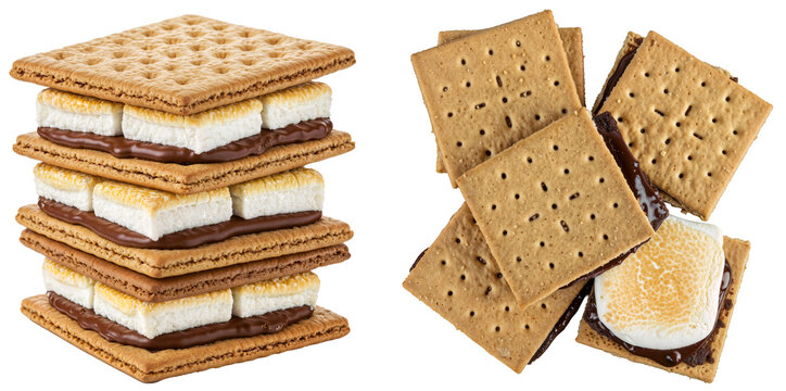 snack dessert, marshmallows, graham cracker, national s'mores day, campfire in background