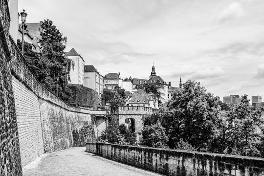 Luxembourg City Skyline: Stunning View of the Old Town and Grund in Europe's Grand Duchy