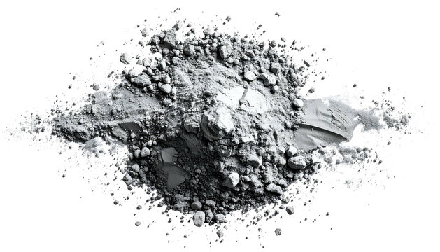 A pile of fine, gray powder with a rough texture, isolated against a black background