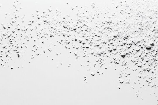 Close-up of a flaky, white plaster-like surface with jagged edges and tiny brown specks. Concept Close-up texture, Plaster surface, White flaky surface, Jagged edges, Brown specks