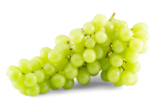 Bunch of dark blue grape isolated on white background, top view, flat lay.