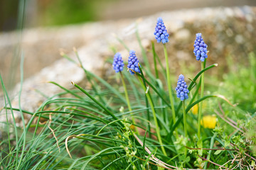 Muscari armeniacum, blue spring bubous flowers in bloom