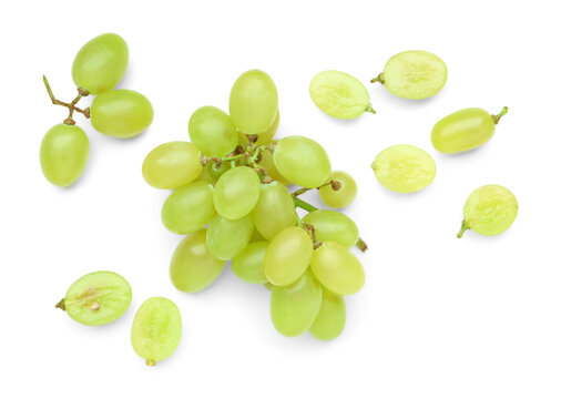 Hand holding grape bunch, sort of Chardonnay, White sort wine, autumn harvest. Photo with selective soft focus. Empty place for text, copy space.