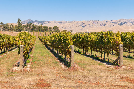 Beautiful Rows of Grape Vines Stretching Across a Picturesque Vineyard.