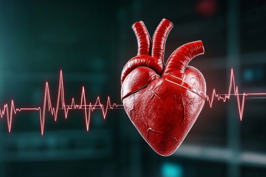 A real-time 3D animation of heart rhythms transitioning into a digital EKG graph, blending biology and technology