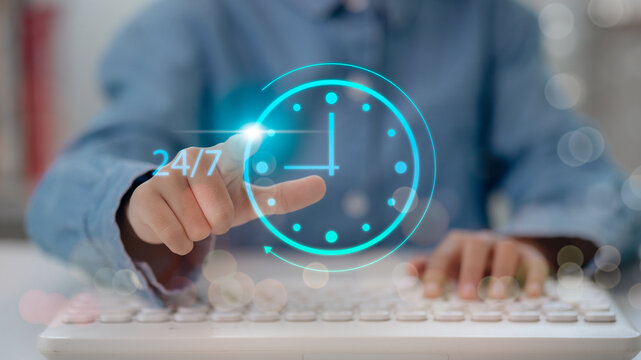 Time management concept with clock and graph interface