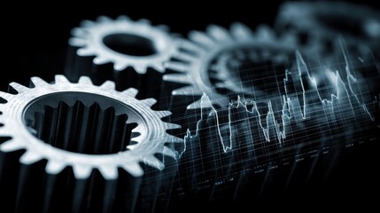Modern Mechanism with Gears Overlaying Graph Data Representation for Industrial and Technological Concepts in a Dynamic Composition
