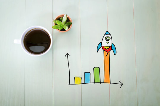 Rocket graph concept with a cup of coffee