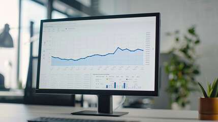 Close-up of blue flat line chart on a screen with small peaks and troughs. Graph of volatility showing increased stagnation in the financial markets and likely recession. Isolated shot with bokeh
