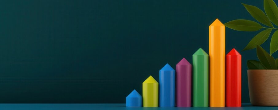3D pie chart showing 70% in navy blue.  Yellow and red segments