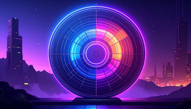 Futuristic pie chart graphic for big data analytics and market segmentation. Digital dashboard concept with copy space.