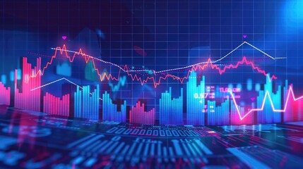 Paper-cut chart bars on blue-pink pastel background. Creative business layout