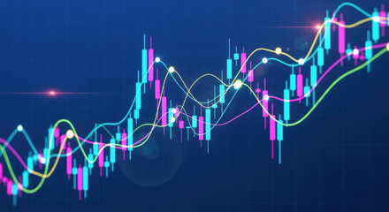 Abstract Financial Chart Analysis Visualizing Market Trends and Investment Strategies with Colorful Lines and Data Points for Economic Forecasting and Growth