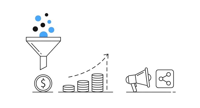 Sales funnel illustration isolated on white background, marketing strategy for lead generation, conversion, customer acquisition and business growth, vector graphic design