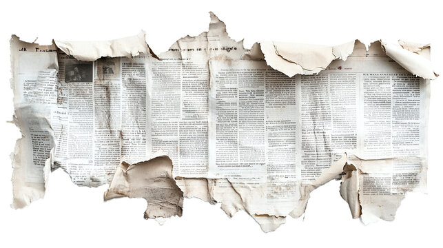 Torn newspaper pieces png with transparent background for scrapbooking, collage art, and graphic design projects.