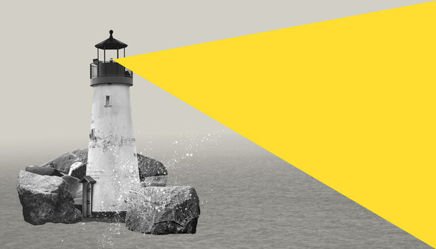 Surreal lighthouse on rocks digital collage