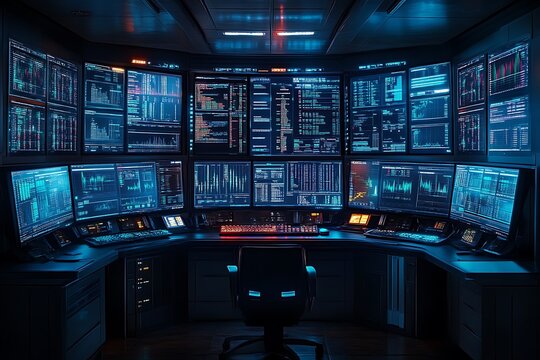 Futuristic interface with data charts and digital displays