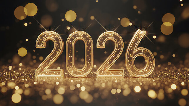 Metallic three dimensional numerals display the forthcoming year twenty twenty six