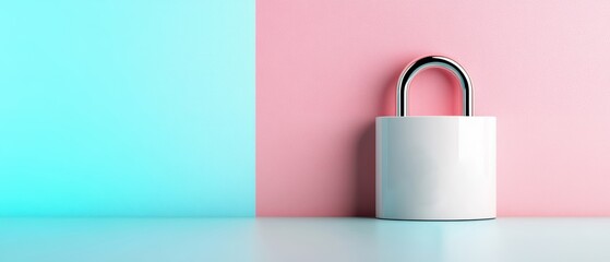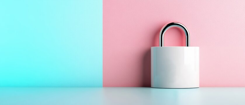 White padlock on pastel blue and pink background, symbolizing security and protection.