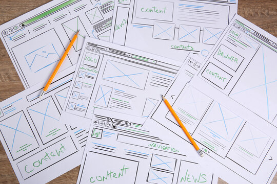 Website designer Creative planning application developer development draft sketch drawing template layout prototype framework wireframe design studio . User experience concept .
