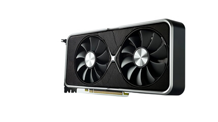 A modern computer graphics card with dual cooling fans