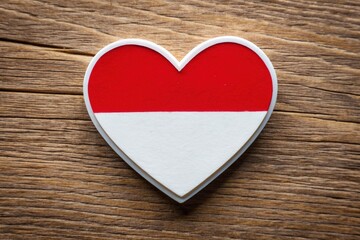 Vibrant red and white heart-shaped sticker featuring the Indonesian national flag, symbolizing love and patriotism for the country and its rich cultural heritage.
