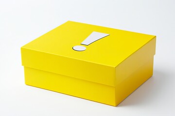 Yellow warning box with exclamation mark symbol isolated on white background representing alert or caution message