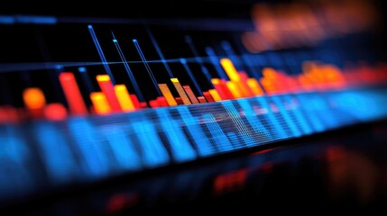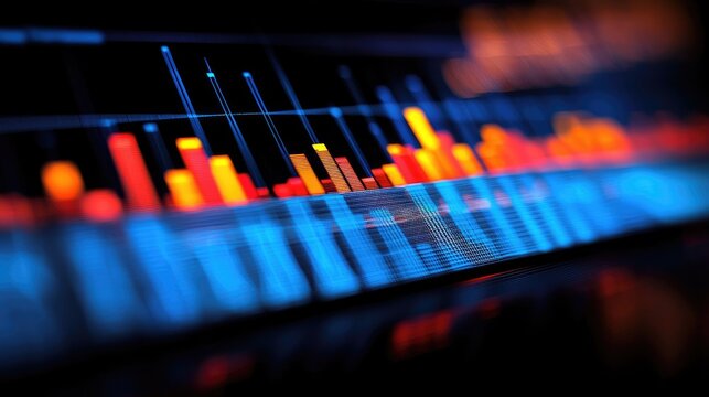 Business analytics dashboard on a laptop screen, with charts and graphs visible. The foreground includes financial documents with various data visualizations.