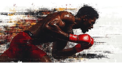 Grappling men controlling torso and hips with colorful digital glitch overlay