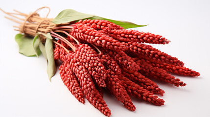 Isolated Italian millet twigs and seeds on white, providing healthy sustenance for diabetic individuals.