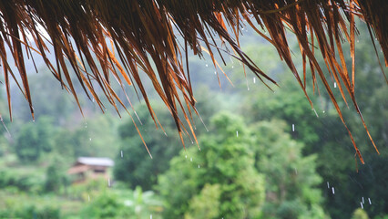 A traditional mud hut with a thatched roof stands in a rural setting, representing authentic village life and architecture.