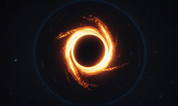 Hypnotic black hole with swirling plasma and distant stars in deep space