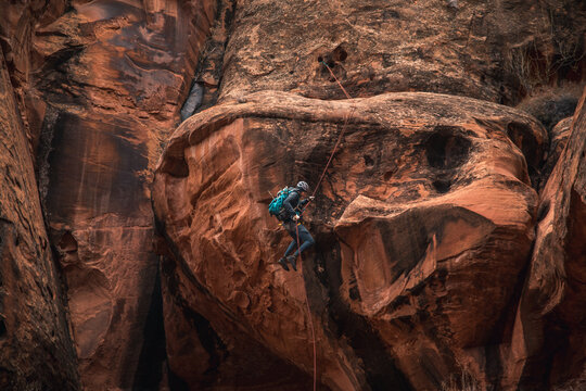 man rappeling from overhang