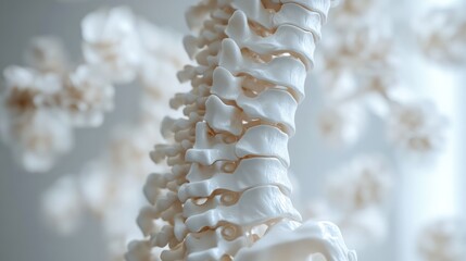 Detailed, anatomical rendering of a human spinal column, angled