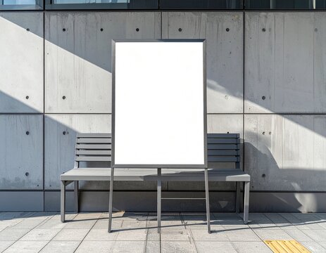 Minimalist interior featuring a simple gray bench in a modern architectural space