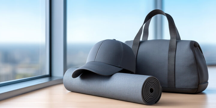 Professional Office Desk Scene with Gray Cap, Laptop, and Green Plant