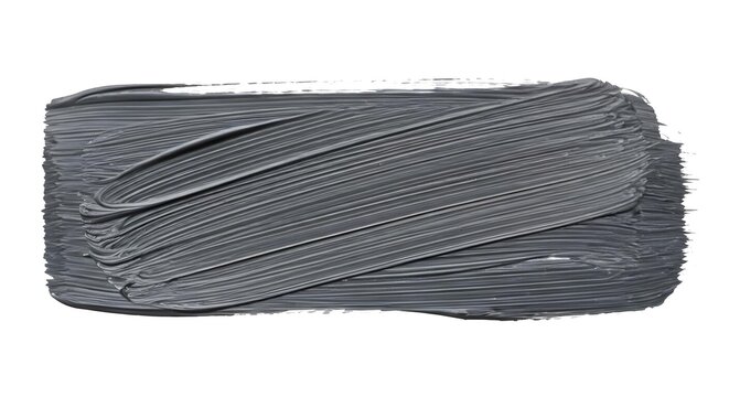 A dynamic hand-painted stroke of steel gray paint brush on a stark white background, highlighting the contrast between the stroke and the canvas.