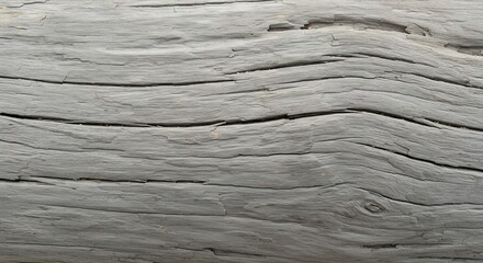 Gray driftwood closeup reveals weathered textured surface with cracks  subtle woodgrain