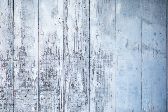 Peeling blue paint revealing weathered wood grain close-up rustic texture background