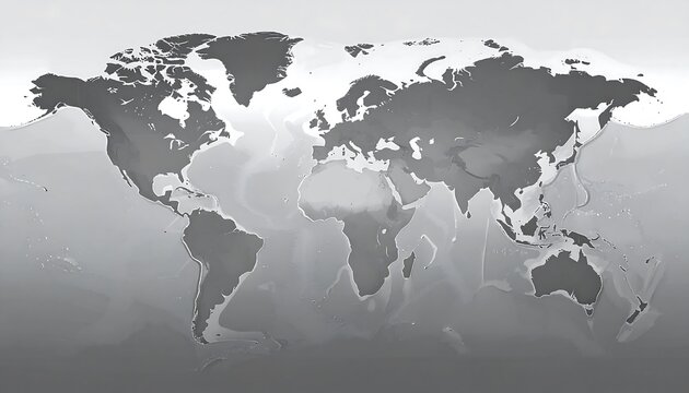 A grayscale world map, depicting continents, oceans, and underwater depths. The image uses shades to illustrate geography
