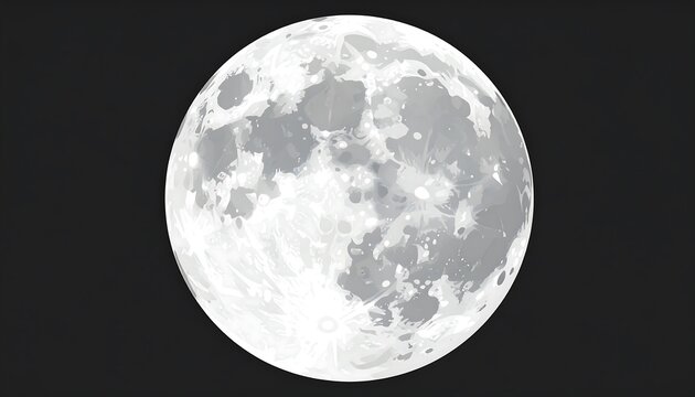 A large, detailed depiction of the full moon in the night sky. Grayscale texture and craters showcase its surface. Simple yet elegant representation