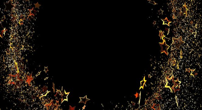 Abstract background featuring golden stars and glitter against a black backdrop, perfect for festive designs and events. Gre