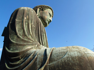 Close up of Great Buddha Statue in the Nanshan scenic area of the Jiaodong Peninsula on a sunny summer day, Longkou, Shandong, China