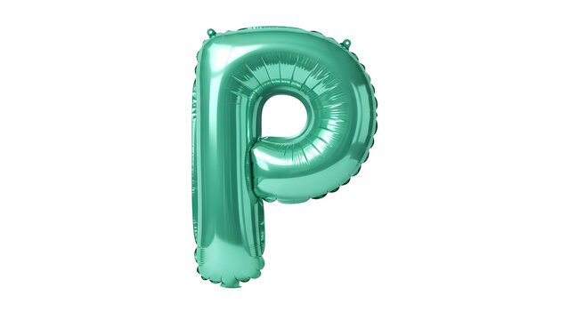 Green balloon letter p isolated on transparent background