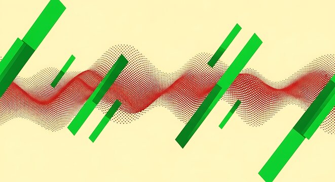 Dynamic interplay of green bars and textured wave on a soft background